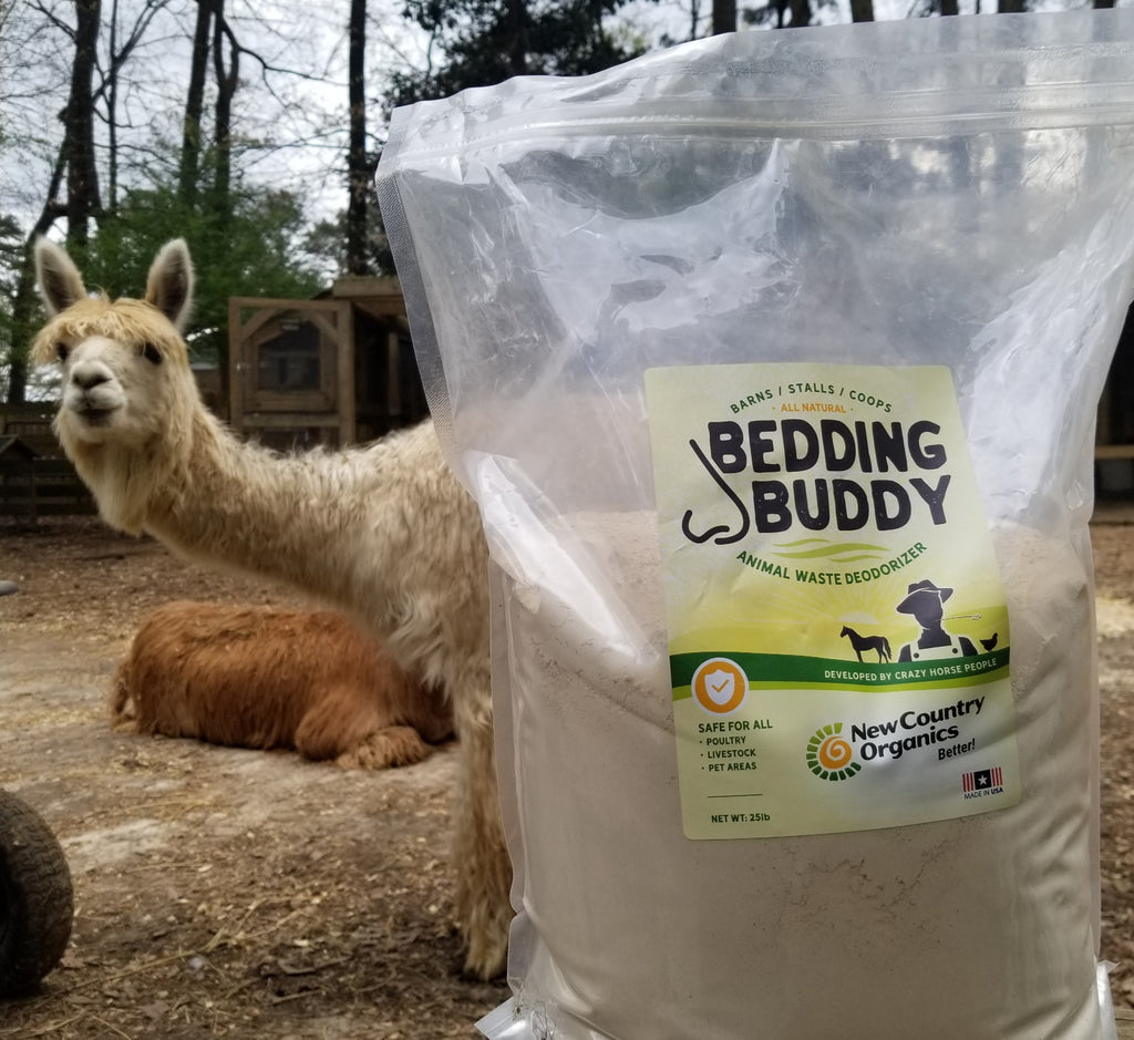 Bedding Buddy from New Country Organics has a combination of montmorillonite and diatomite has the power to neutralize sneaky, harmful ammonia for good through a chemical binding process called adsorption—without binding crucial vitamins and minerals in your soil later.